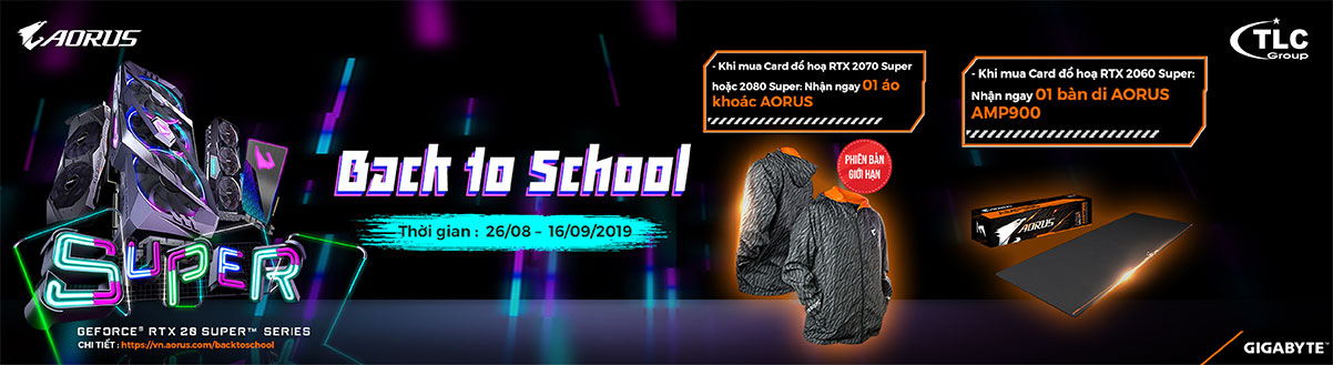 Mùa tựu trường vẫy gọi, mang đến cơ hội trải nghiệm sản phẩm chất lượng cho khách hàng, GIGABYTE phối hợp cùng nhà phân phối Thủy Linh và Hải Anh Computer tổ chức chương trình khuyến mãi đặc biệt cho người tiêu dùng - “Aorus Back to School – Săn áo khoác cực cool”.